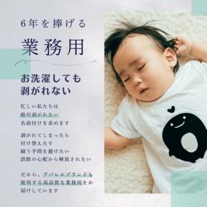 洗濯を繰り返しても、赤ちゃんがしゃぶっても、剥がれにくい丈夫なノリを使用しています。