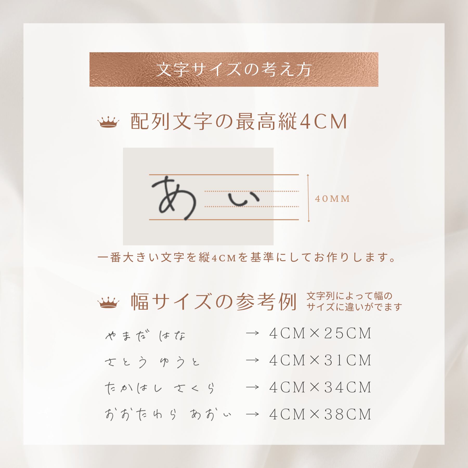 無地に圧着すると、お名前が引き立って高見えします。