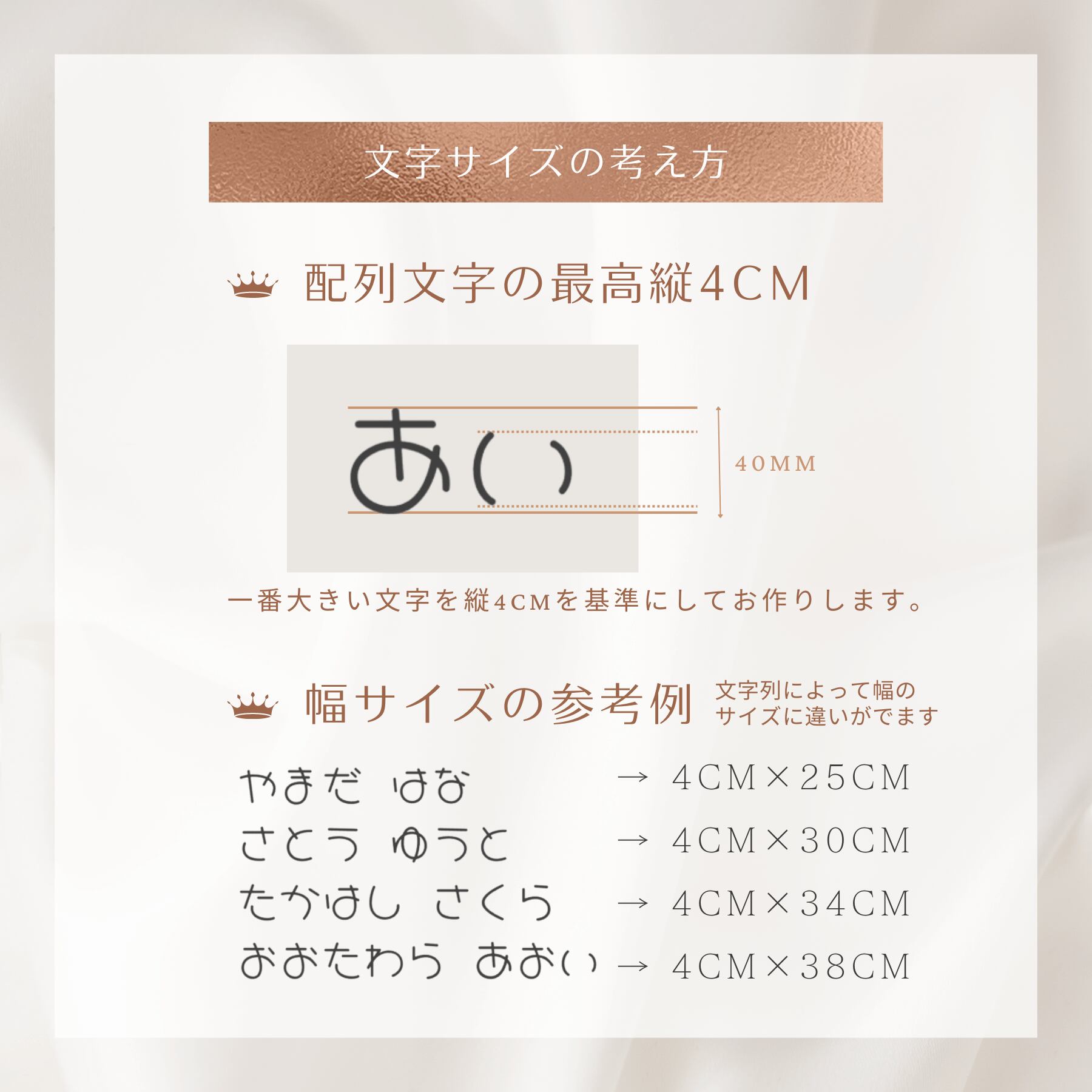 ・姓名の間には半角スペース分を開けてお作りします。